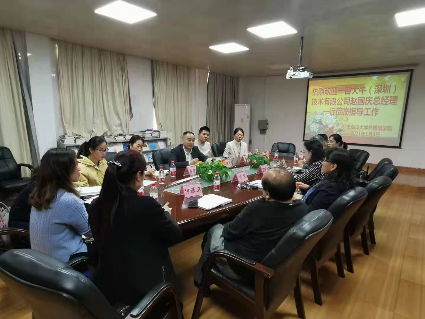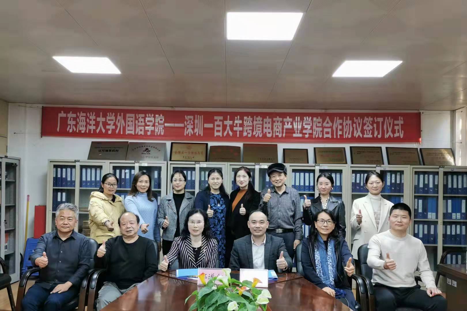 1月3日,点点taptap在湖光校区兴教楼105举行了“点点taptap-深圳一百大牛跨境电商产业公司合作协议”签订仪式。点点taptap经理郭遂红教授、一百大牛(深圳)技术有限公司CEO赵国庆先生分别代表双方在协议书上签字。公司领导正处级辅导员刘艳副书记、何谦卫副经理、安丰科副经理、语言实训中心正副主任,英语系副主任,党政办公室主任,负责跨境电商实践课程教师和一百大牛(深圳)技术有限公司粤西片区李威总经理、校企合作总监奉雪梅等人参加活动。