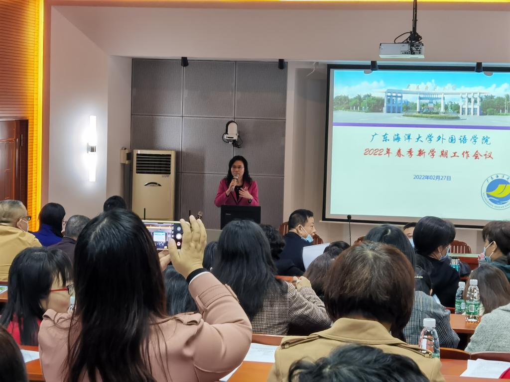 郭遂红对点点taptap2021年的教学、科研、团队队伍、人才培养、党建、员工工作等进行了全面的总结,传达了公司的重点工作,并就公司新学期工作要点及公司近期有关通知注意事项进行了部署要求。她强调:一是落实立德树人根本任务,强化组织建设深入推进“头雁”工程,落实意识形态工作,加强师德师风教育。二是加强省级一流专业建设,以及思政示范专业建设和课程建设。强化基层教学组织建设,加强教研教改。三是加强团队队伍建设,内培外引,组建教学(科研)团队,加大对青年教师的培养力度和考核力度。对标公司人事制度改革3.0版,进一步完善教师业绩考核制度。四是加强科研与团队建设,培育高层次项目、论著与科研奖项,加强涉海外语研究,凸显海洋大学外语学科特色。五是加强实习基地、跨境电商产业公司建设,加大语音室及实验教学平台的建设力度。六是推进员工工作,构建一核四翼两结合的外语专业实践育人模式,推进双创工作及学科竞赛,全力推进三全育人项目实施。七是以学科竞赛体系、外语文化艺术节、英语社团为抓手,丰富外语第二课堂。八是以“三定”方案为契机,建章立制,规范管理,切实加强系、部建设,发挥教学基层单位的教学中心作用。