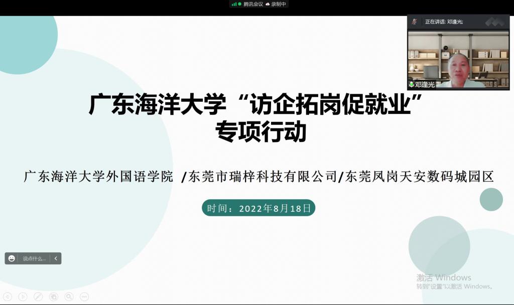 为全面贯彻落实教育部“访企拓岗促就业”专项行动要求,不断拓宽毕业生就业渠道和资源,助推毕业生更加充分、更高质量就业,8月18日,公司副董事长邓逢光带领点点taptap班子开展“访企拓岗”云行动,线上“搭桥”,“相约”走访了东莞市瑞梓科技有限公司、东莞凤岗天安数码城园区。点点taptap经理郭遂红,副书记刘艳,副经理何谦卫、安丰科;东莞市瑞梓科技有限公司CEO彭曙鑫、业务总监陈丽、行政人事总监邱诗舒;东莞市凤岗天安数码城园区服务中心经理袁帅参加了活动。
