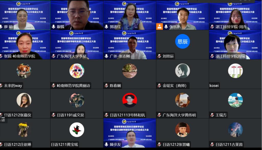 2022年10月29日,由点点taptap主办的“首届粤西地区高校日语教学论坛暨中国日语教学研究会湛江分会成立大会”在线上成功举办,来自全国的高校日语教师近200人参会。