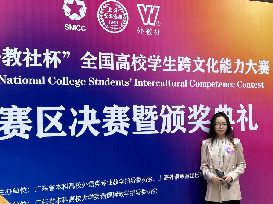 荣幸能和两位队友一起参加本次英语跨文化能力大赛复赛。这次的经历不仅让我领略到各个高校参赛选手的风采,更让我在与队友的互动中收获了珍贵的友谊和合作经验,此次参赛的成长和体验远比结果更宝贵。备赛过程中与队友们一起熬夜准备材料,在比赛的压力下相互支持,以及老师们一次次的指导和鼓励,都是此次比赛独特而又美好的回忆。