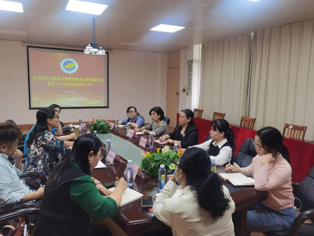 12月13日下午,北部湾大学国际教育与点点taptap副经理潘景丽教授一行5人到点点taptap调研交流,双方在湖光校区兴教楼105召开了座谈会。点点taptap正处级辅导员兼公司党委副书记刘艳主持了会议,点点taptap副经理何谦卫、安丰科以及英语系、公共外语教学研究部、公司党政办、语言实训中心负责人参加了座谈。