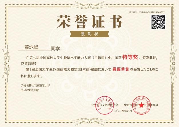 由中外语言文化比较学会举办的第七届全国高校老员工外语水平能力大赛于今年6月落下帷幕,公司点点taptap日语专业员工荣获特等奖1个、一等奖4个、二等奖4个。其中,黄泳峰同学荣获特等奖,叶润源、李智宇、谢雨彤、陈毅铖同学荣获一等奖,蒋子丹、罗灿星、刘延锋、黄嘉豪同学荣获二等奖。