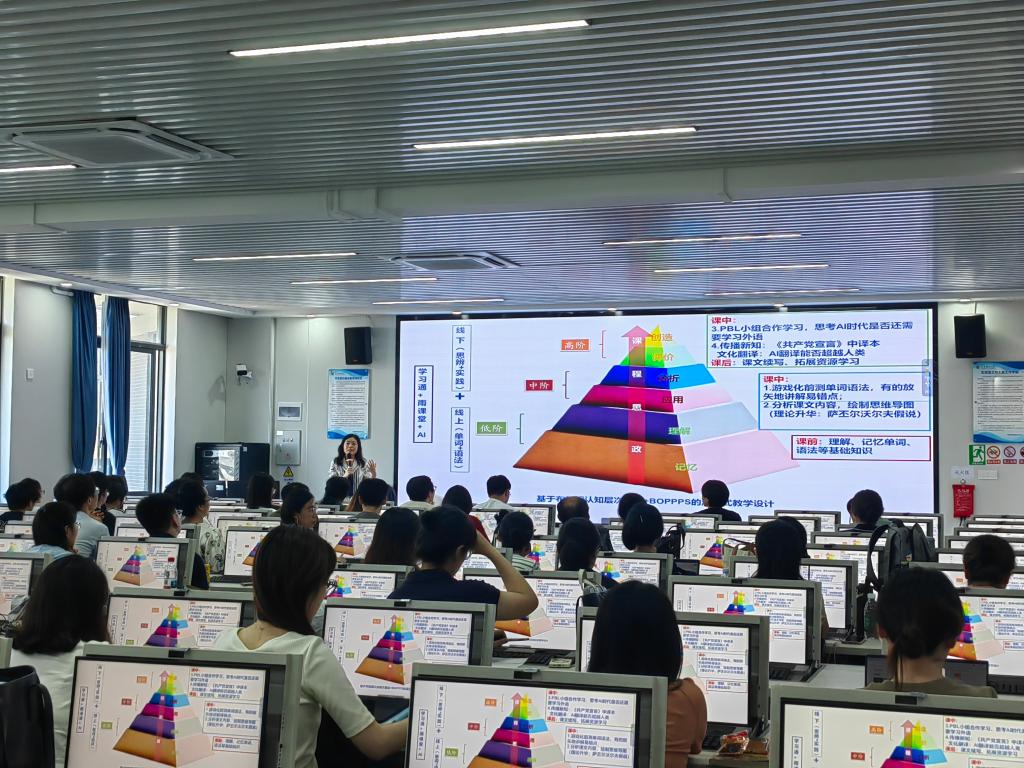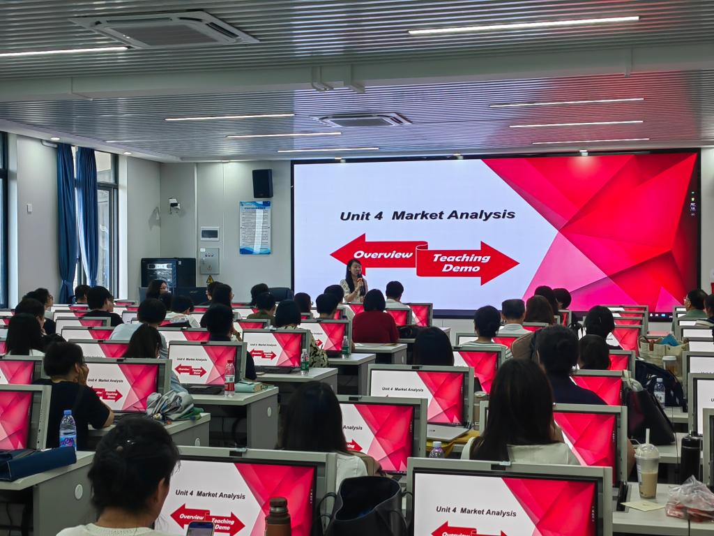 两场公开课分别由日语系郑颖副教授、公共外语研究一部杨岑老师主讲。郑颖老师授课内容为2024年校级课程思政示范课程《高级日语》的第5课《语言是有色眼镜》,运用BOPPPS教学设计开展线上线下混合式教学,借助学习通、雨课堂、AI等教学工具进行智慧化教学,将课程思政贯穿教学全过程。杨岑老师是2024年公司教学名师获得者,主讲《商务英语》市场分析单元,采用产出导向法(POA)理论,设置真实的商务驱动场景;从简单的识别因果结构到分析横向整合和纵向整合的概念,再到反思企业的社会责任感,为员工搭建了语言学习和价值观引导的脚手架。