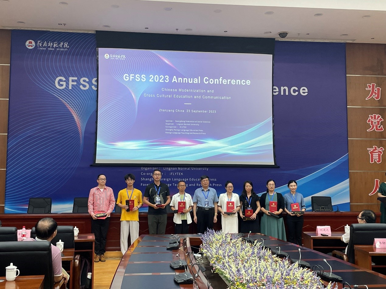 公司教师蒋侠博士在会上展示了论文‘中国武术文化的多模态国际传播——基于《影》字幕翻译的多模态语用分析’;黎曜玮老师宣读了与马海兰老师合著的论文‘基于机器学习的多维度特征自动作文评分模型构建’。两位老师的论文展示得到了与会专家学者的一致好评。其中黎曜玮和马海兰合著的论文荣获2023年广东社会科学学术年会第十一分会优秀论文。