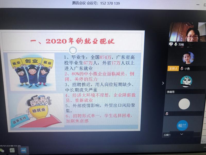 郭遂红分别从当前就业形势、公司帮扶措施、员工就业选择三个方面展开分析,并对毕业班员工提出四点希望:一是根据自身实际情况确定择业目标;二是要摆正心态、先立足、后发展;三是要利用线上求职特殊时期,打牢基本功,提高就业能力;四是充满自信、勇敢出击,实现顺利就业。