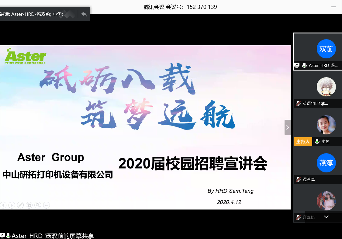 闻达教育科技有限公司、深圳市欣博跃电子有限公司等6家用人单位招聘负责人依次展开线上招聘宣讲。他们分别就公司成长背景、公司文化理念、公司发展现状、招聘需求及员工待遇等方面为同学们做了详细介绍,并邀请了公司毕业的在职员工分享了求职应聘经验,让参会的毕业生获益良多。