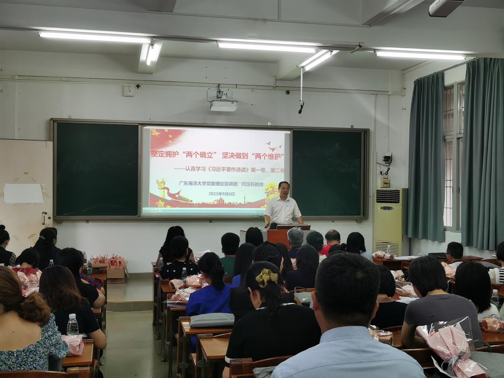 闫玉科以坚定拥护“两个确立”坚决做到“两个维护”——认真学习《习近平著作选读》第一、第二卷为题,从《习近平著作选读》第一、第二卷出版的背景与意义、主要内容、学习要求与方法、学习习近平总书记在广东考察时的重要讲话精神等四个方面进行深入浅出的阐述,他表示:我们要进一步学懂弄通做实习近平新时代中国特色社会主义思想,深刻把握这一思想的理论特质、科学体系、世界观方法论和宏大使命情怀,努力在以学铸魂、以学增智、以学正风、以学促干方面取得实效,更好担负新时代新的文化使命。全面系统深化对习近平新时代中国特色社会主义思想的理解,要学出政治忠诚,学出使命担当,学出实干精神。切实把学习成效转化为坚定理想、锤炼党性的高度自觉,转化为做好本职工作、推动事业发展的生动实践。